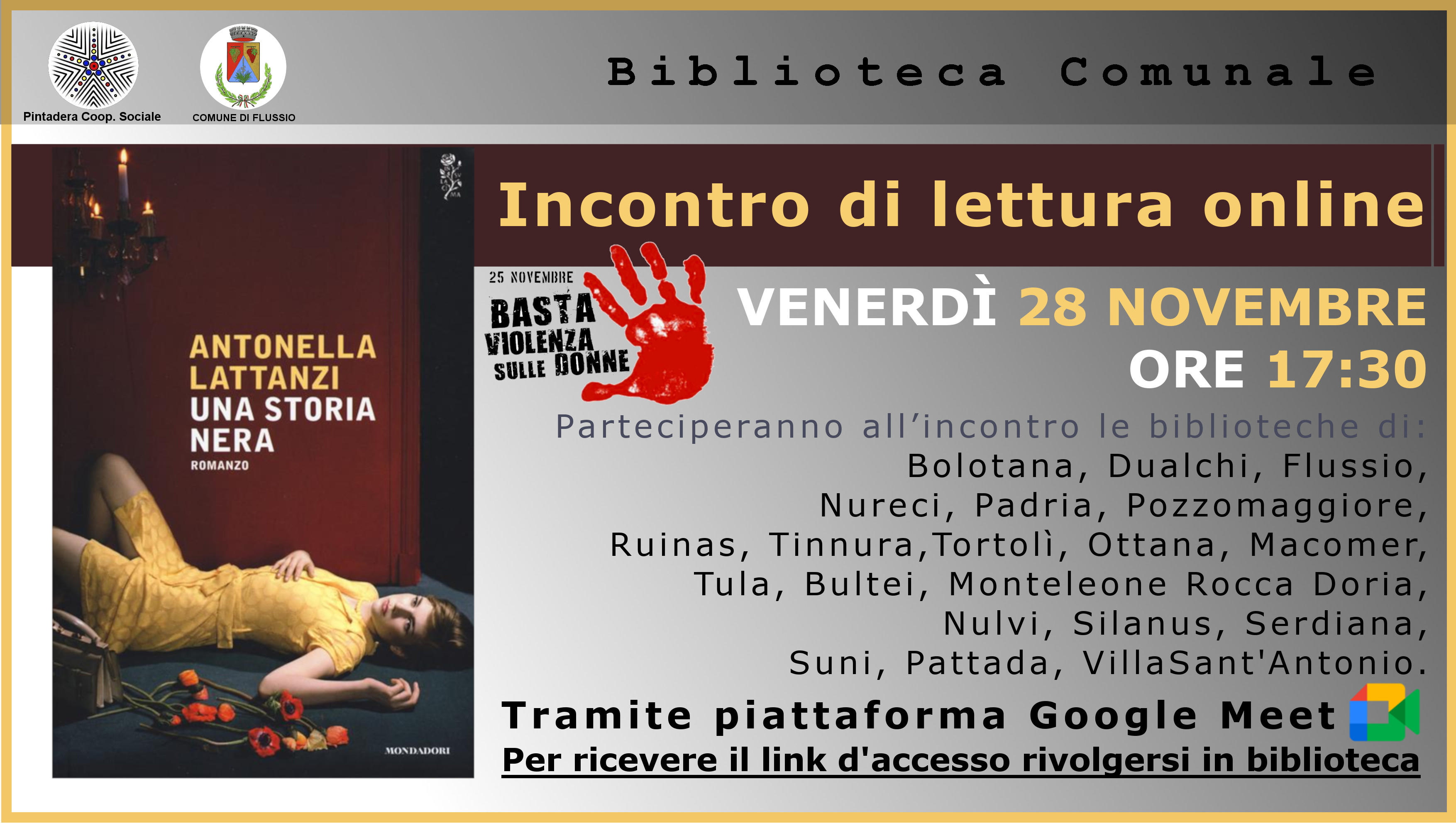 Biblioteca comunale. Nuovo orario di apertura. locandina della lettura online di venerdì 16 gennaio.:
